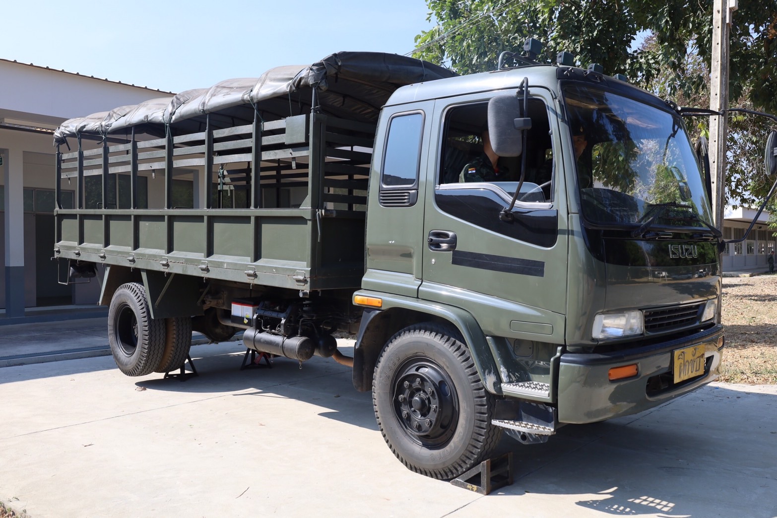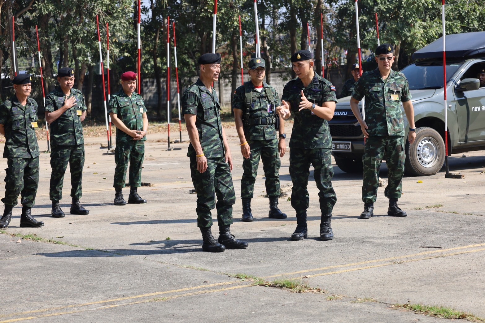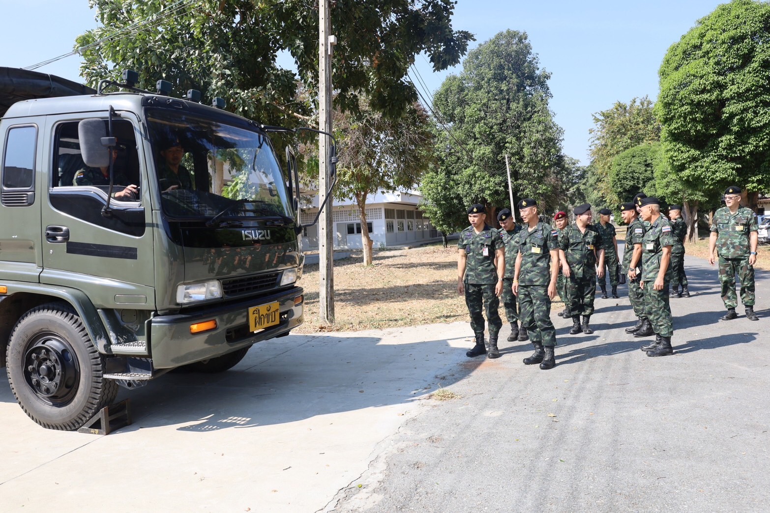 พลตรี คำศักดิ์ นิภานันท์ เสนาธิการโรงเรียนนายร้อยพระจุลจอมเกล้า หัวหน้าคณะตรวจเยี่ยมการฝึกฯ เดินทางไปตรวจเยี่ยมการฝึกภาคสนามวิชาการฝึกขับรถยนต์ทหารของ นักเรียนนายร้อย ชั้นปีที่ 2 รุ่นที่ 76