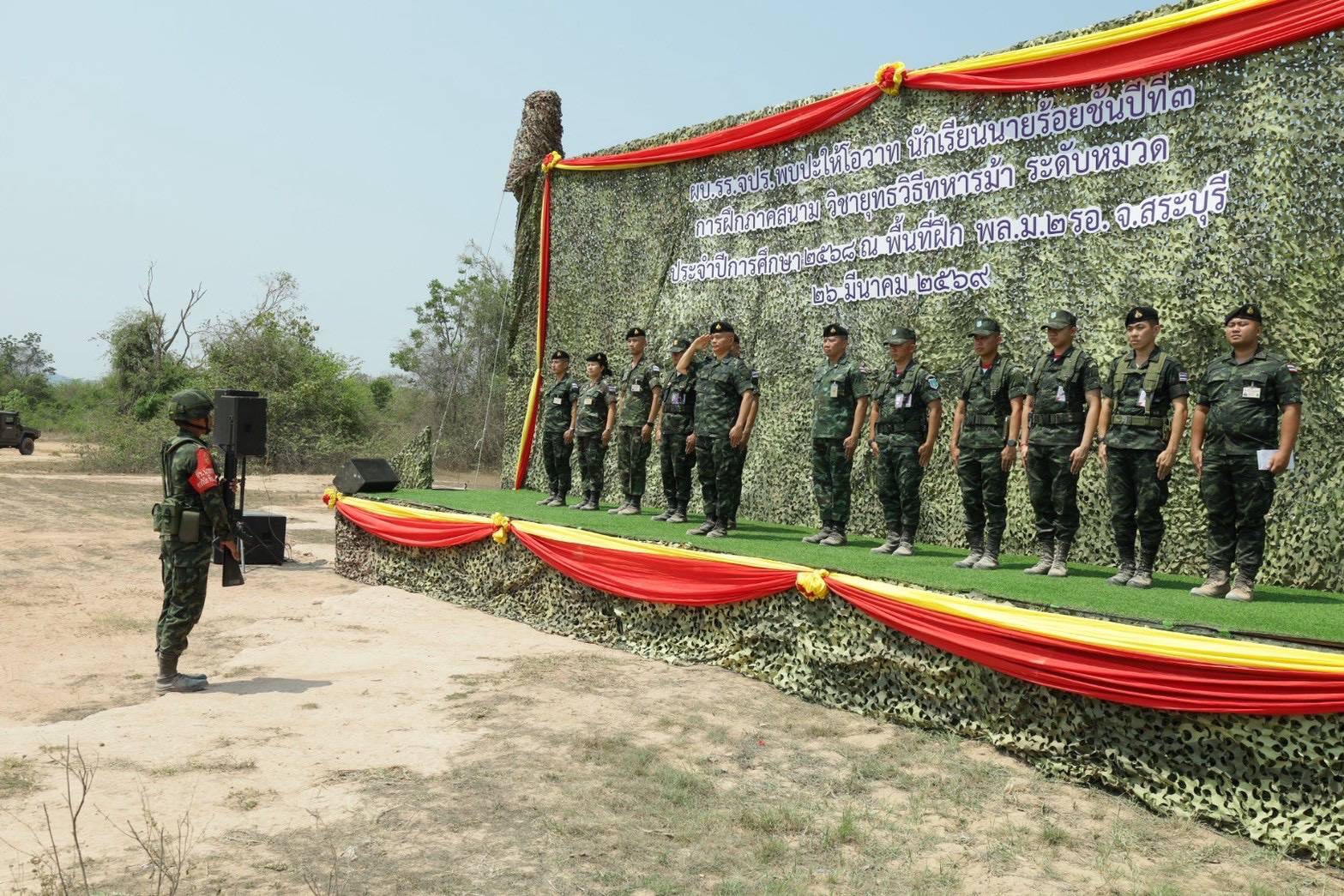 เมื่อวันพฤหัสบดีที่ 26 มีนาคม 2569 เวลา 09.00 นาฬิกา พลตรี ศรัณย์ภัทร พลศรี ผู้อำนวยการส่วนวิชาทหารโรงเรียนนายร้อยพระจุลจอมเกล้า เดินทางมาตรวจเยี่ยมการฝึกภาคสนามของ นักเรียนนายร้อย ชั้นปีที่ 3 รุ่นที่ 75 ในการฝึกทางยุทธวิธีทหารม้าระดับหมวด ณ ศูนย์การทหารม้า จังหวัดสระบุรี โดยตรวจเยี่ยมสถานีการฝึก ดังนี้