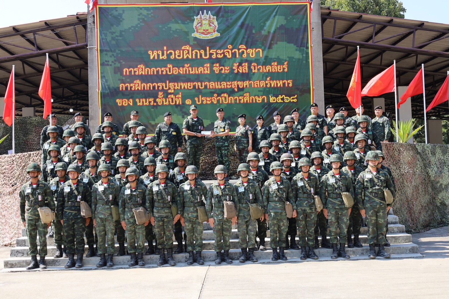 เมื่อวันจันทร์ที่ 12 มกราคม 2569 เวลา 10.00 นาฬิกา พันเอก ชัยณรงค์ แก้วประสิทธิ์ รองเสนาธิการโรงเรียนนายร้อยพระจุลจอมเกล้า(1) หัวหน้าคณะตรวจเยี่ยมการฝึกฯ เดินทางไปตรวจเยี่ยมการฝึกภาคสนามของนักเรียนนายร้อย ชั้นปีที่ 1 รุ่นที่ 77 วิชาการป้องกัน เคมี ชีวะ รังสี นิวเคลียร์ ณ สนามฝึกโรงเรียนนายร้อยพระจุลจอมเกล้า มีรายละเอียดการปฏิบัติดังนี้